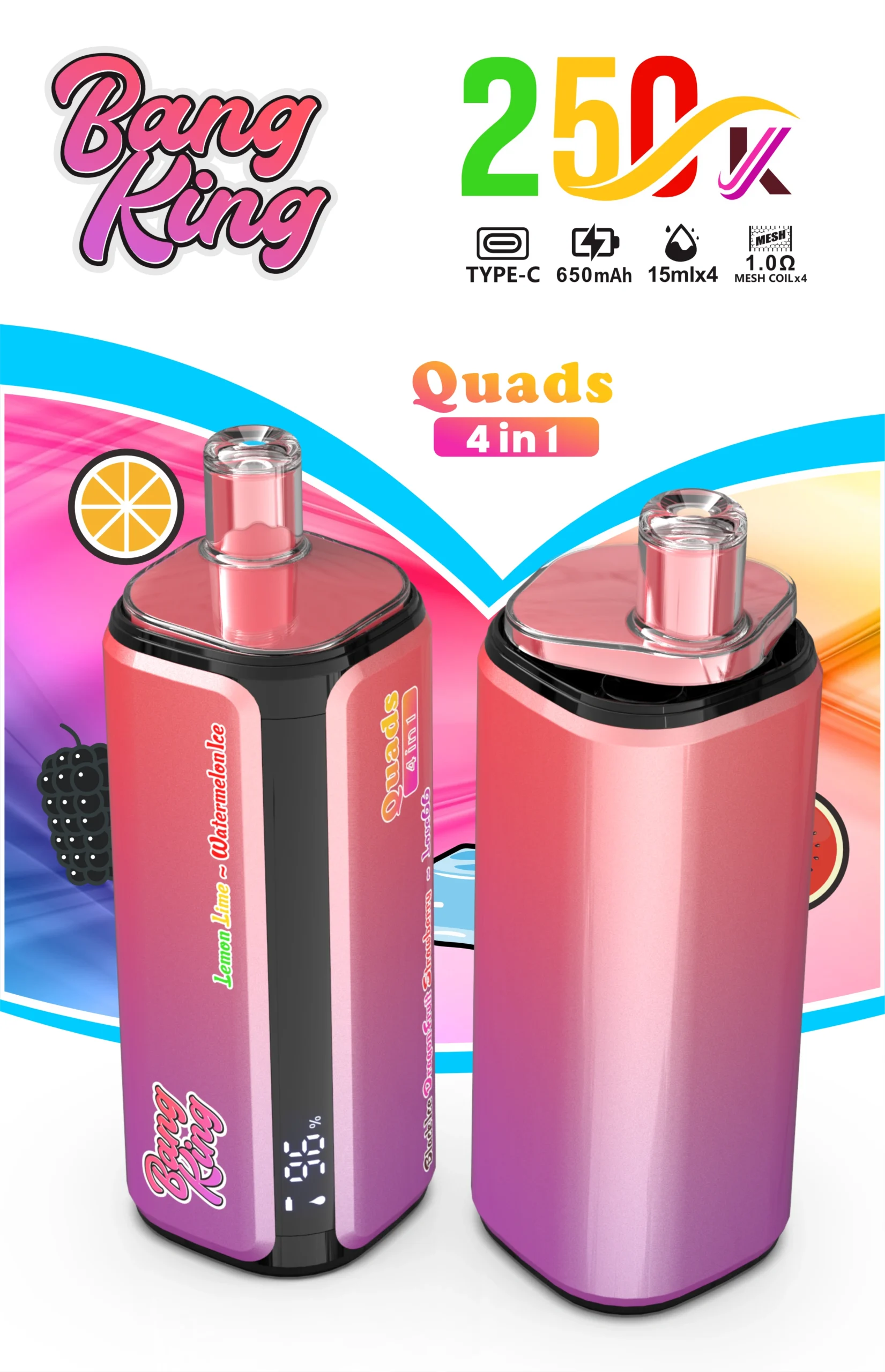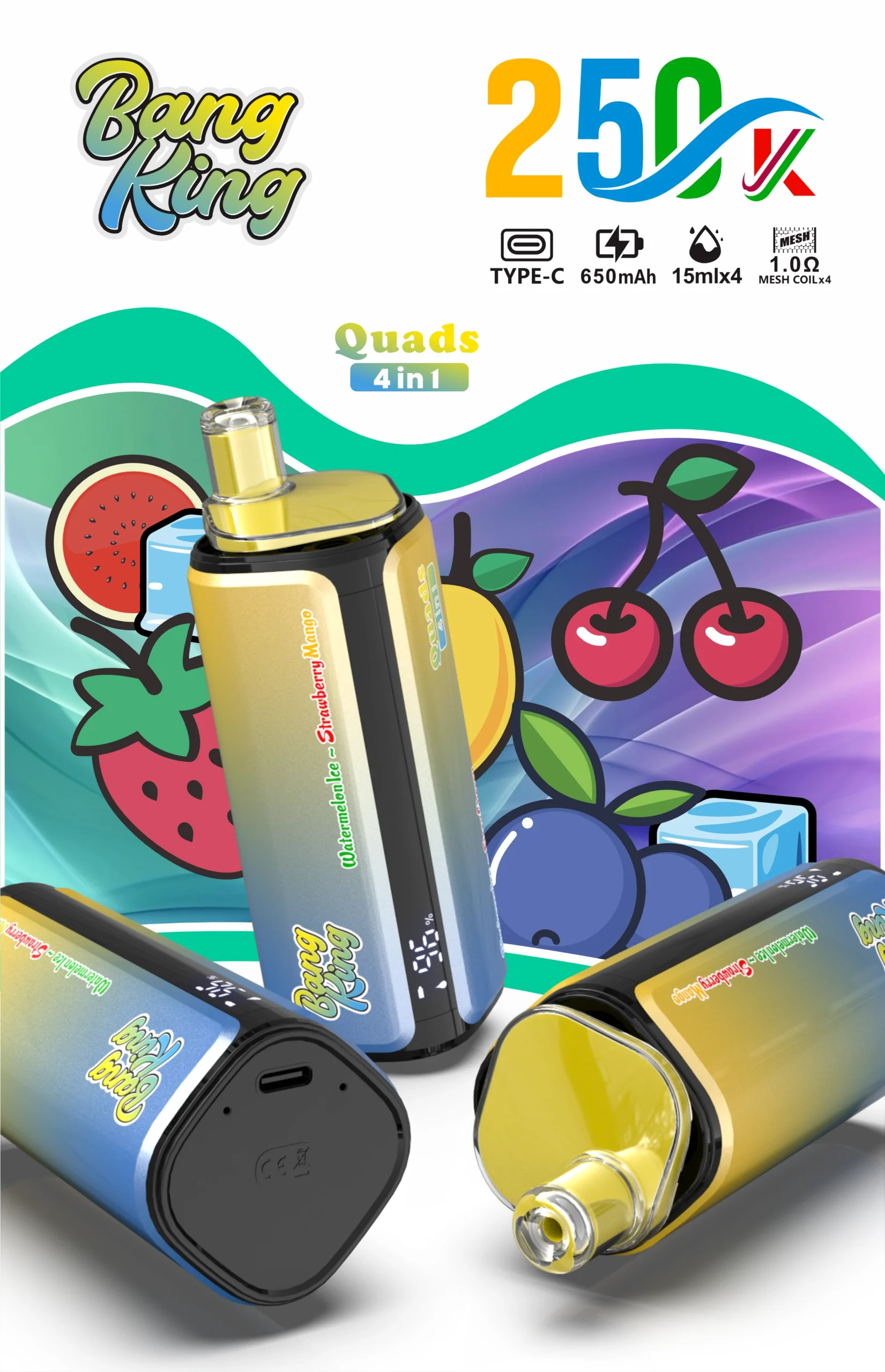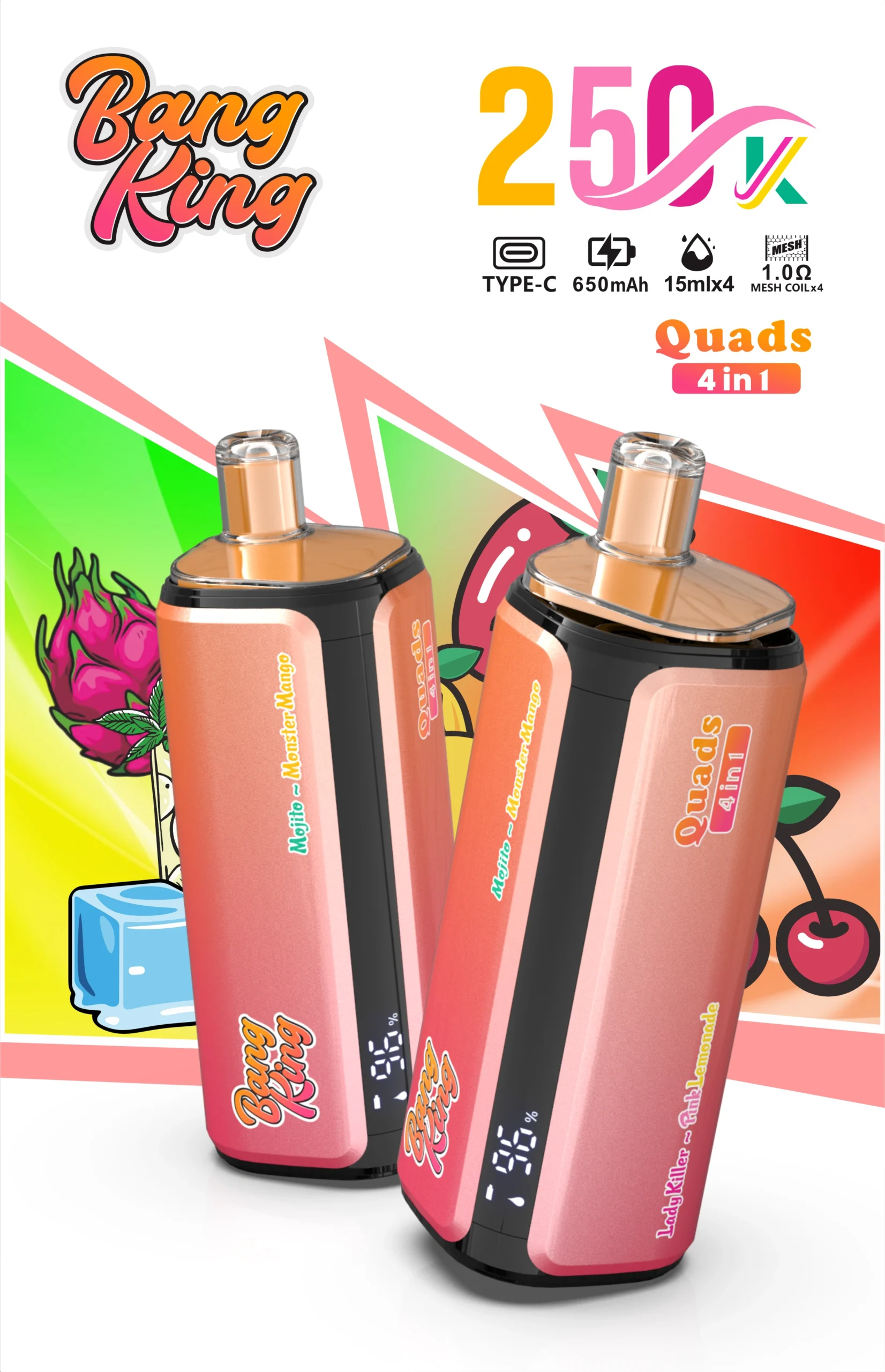 Abbiamo lanciato un singolo pezzo di BANG King 250K che puoi acquistare e, se sei un imprenditore, puoi anche acquistarlo all'ingrosso. Sono venduti in confezioni all'ingrosso da 200 unità/scatola, ideali per i negozi che desiderano offrire prodotti specializzati.