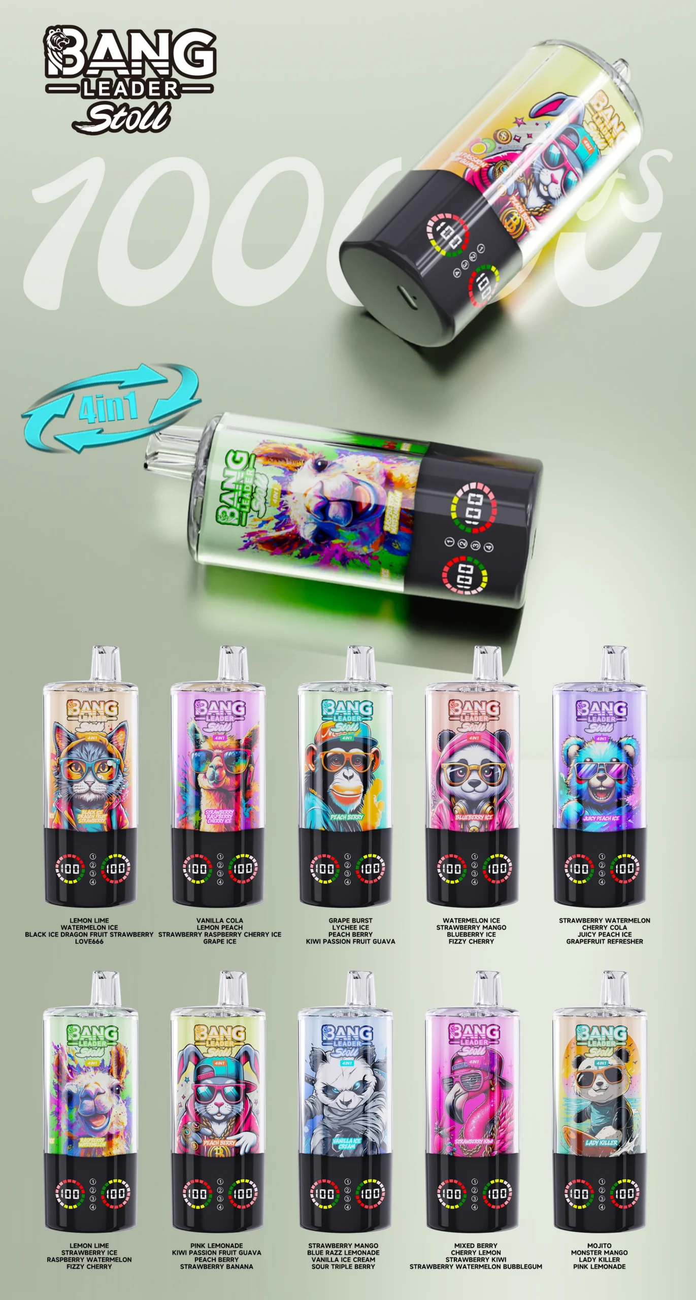 Als u het apparaat voor persoonlijk gebruik wilt aanschaffen, kunt u de Bang Leader 100k los kopen. Heeft u een winkel of verkoopt u online? Dan is groothandel ook een goede optie, omdat klanten het concept van "één apparaat, vier smaken" waarderen – dit kan smaakvermoeidheid voorkomen.
