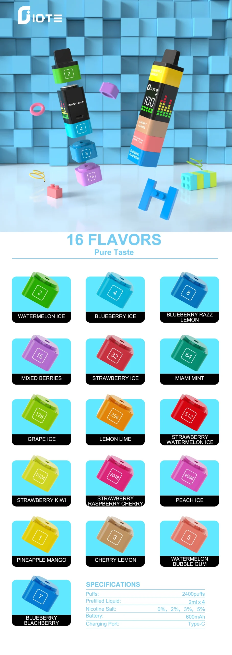 Temos equipamentos genuínos 100% em stock, com preços grossistas com desconto, atendimento rápido ao cliente e serviços de entrega DDP rápidos. Adicionar IQTE Adicione o vaporizador 4 em 1 com cápsulas de vários sabores e 2400 baforadas à sua linha de produtos, oferecendo aos clientes um kit simples e versátil para torná-los clientes fiéis.