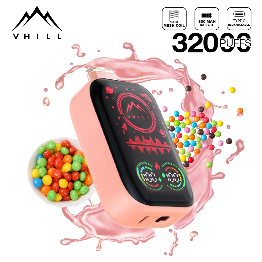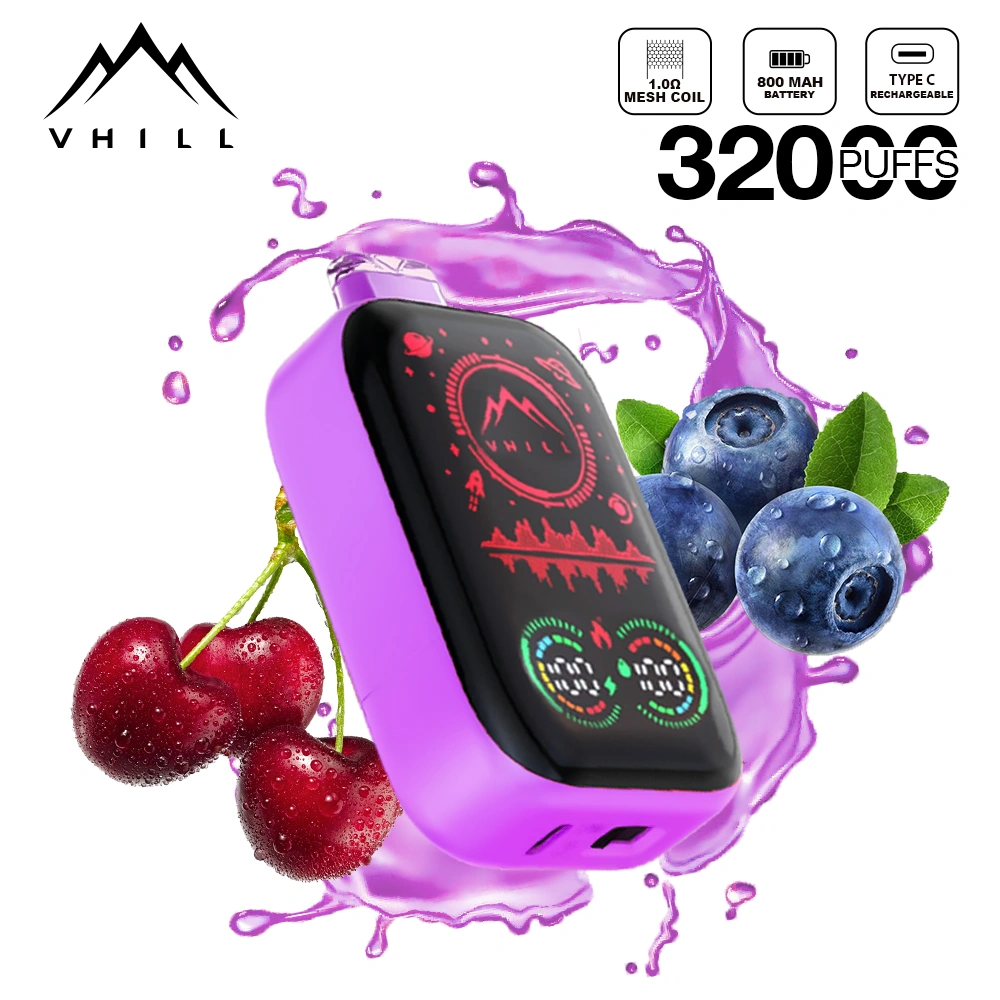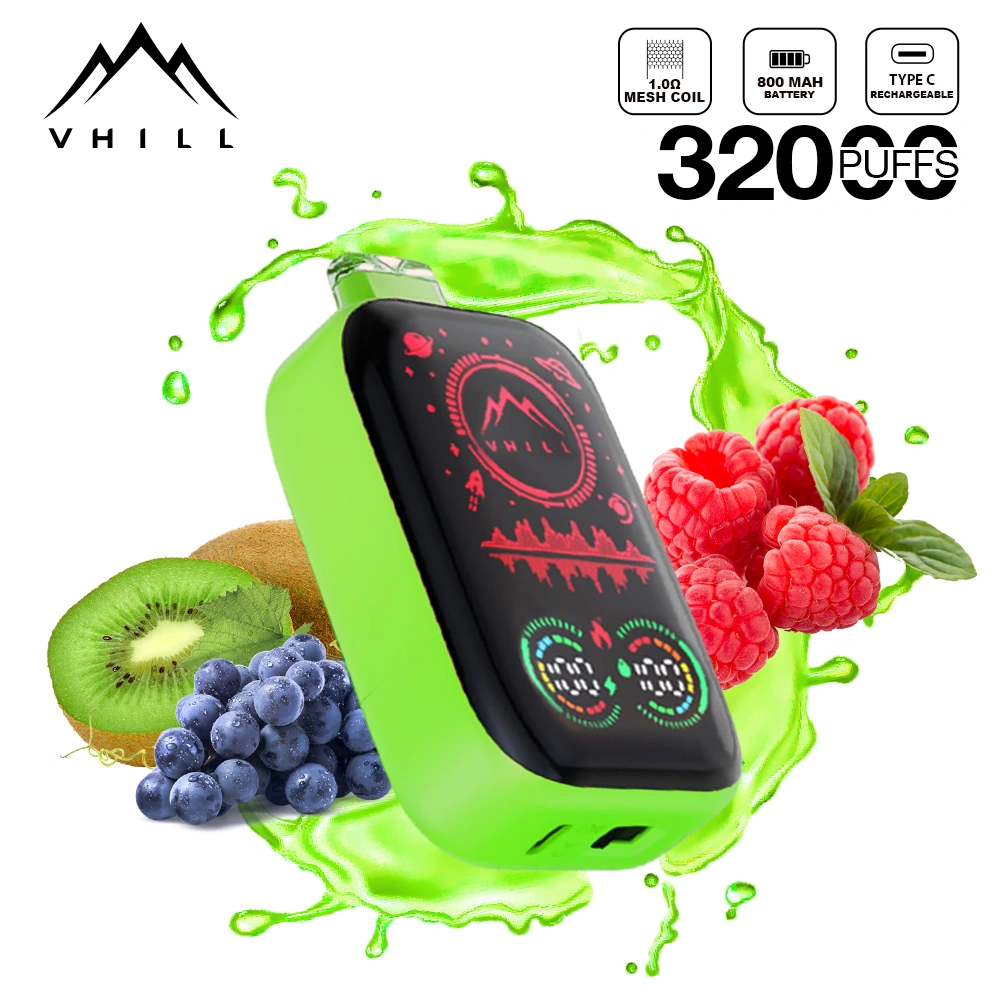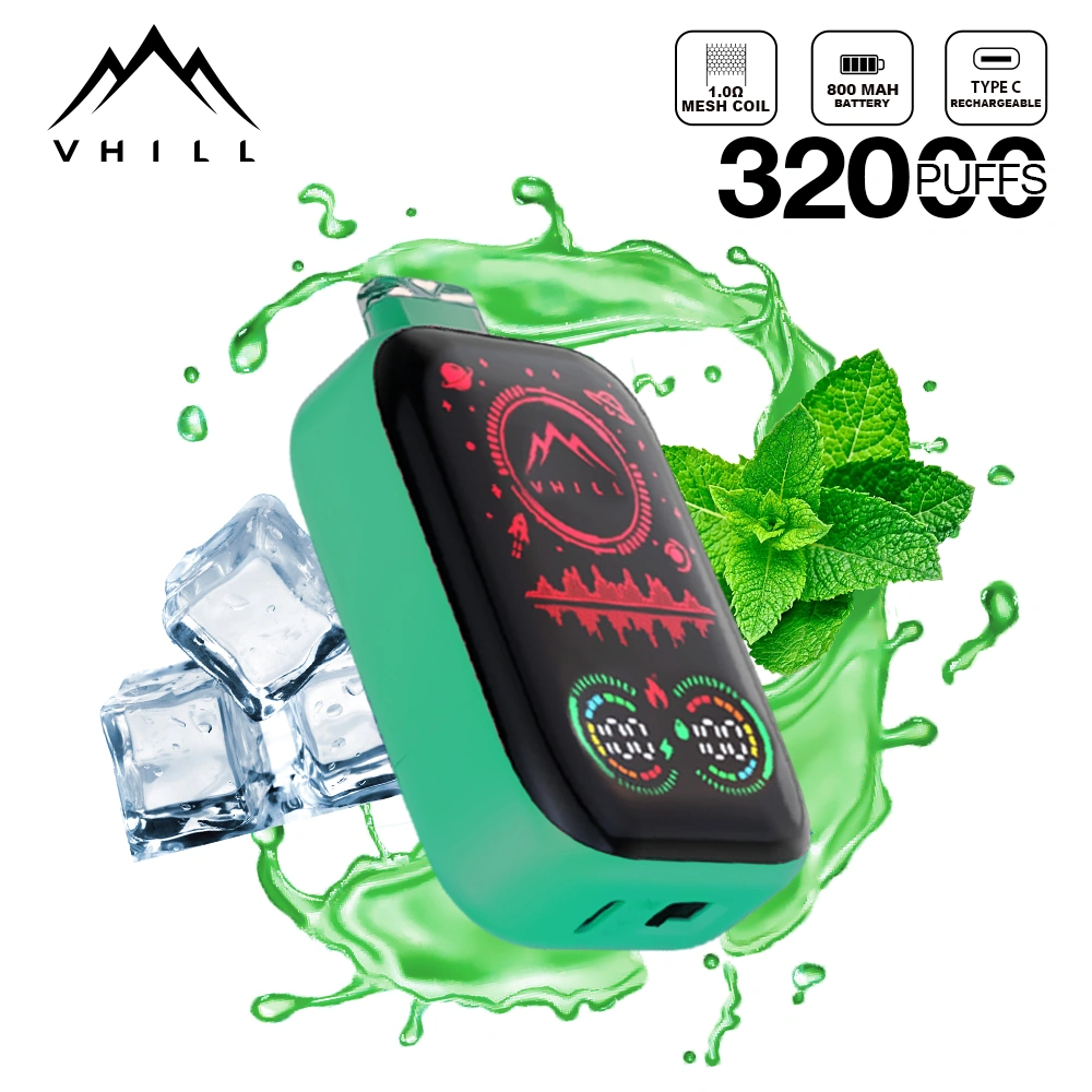 Se você está cansado de vapes descartáveis que acabam em uma semana, este vape definitivamente vale a pena considerar. O Vhill 32K com tela completa tem bateria de longa duração e vem equipado com duas telas nítidas, permitindo que você verifique facilmente o nível do e-líquido e da bateria num relance. Sem necessidade de adivinhar, fácil e prático.