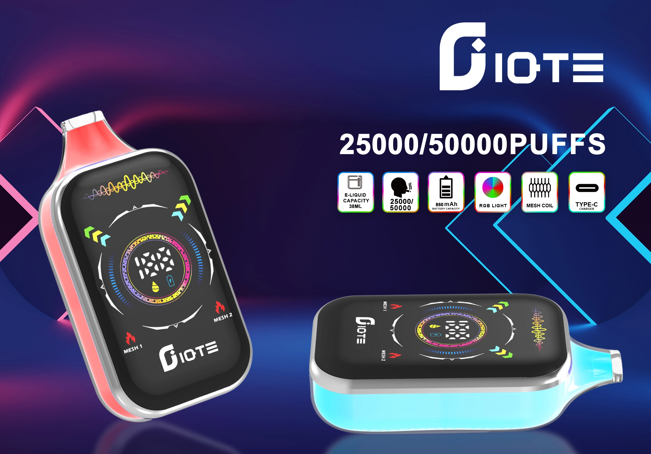 IQTE 50000 Puffs Vape reîncărcabilă de unică folosință | Capacitate mare, încărcare simplă